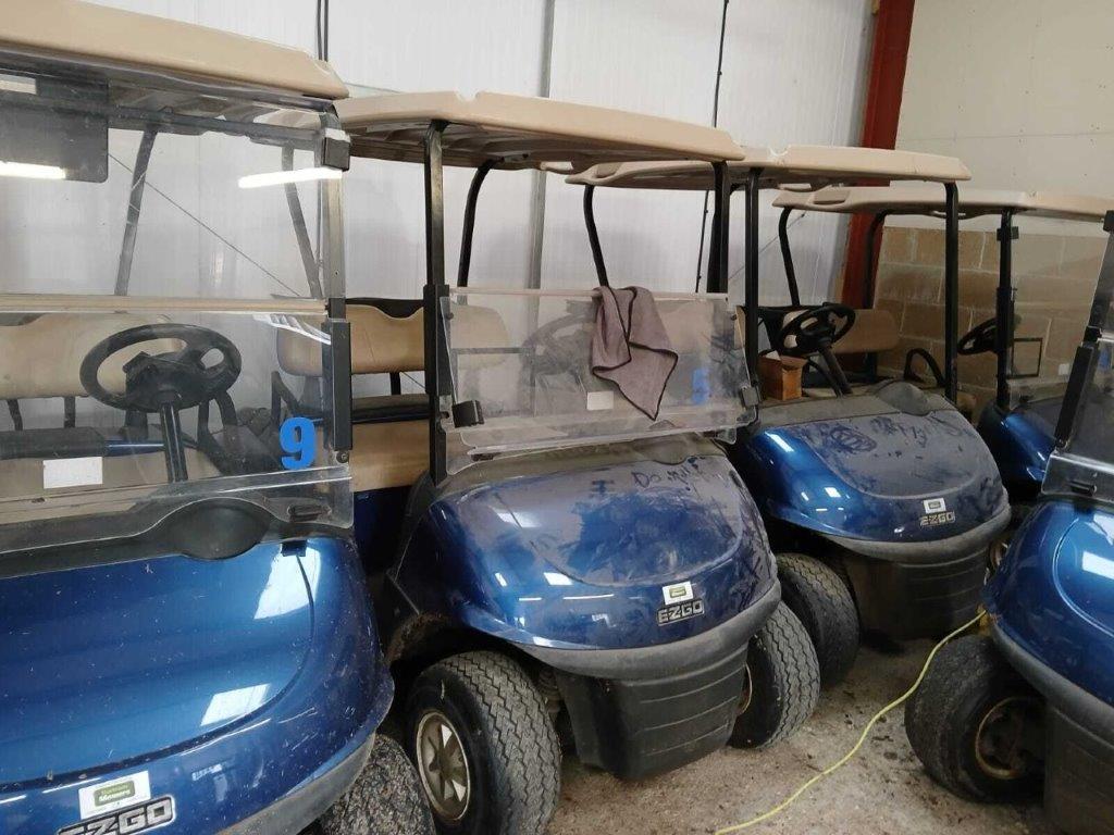 ELECTRIC BLUE 48 VOLT, ON BOARD CHARGER, BATTERY FILLING KIT, FOLD DOWN WINDSHIELD, STONE BEIGE SUNTOP AND SEATS, TWIN BAG CARRIER, SWEATER BASKET.