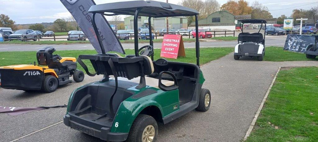 FORREST GREEN 48 VOLT DC LITHIUM ION, ON BOARD CHARGER, FOLD DOWN WINDSHIELD, STONE BEIGE SUNTOP STONE BEIGE SEATS, TWIN BAG CARRIER, SWEATER BASKET.
