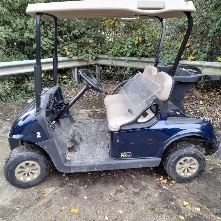 PATRIOT BLUE 48 VOLT DC LITHIUM ION, ON BOARD CHARGER, FOLD DOWN WINDSHIELD, STONE BEIGE SUNTOP STONE BEIGE SEATS, TWIN BAG CARRIER, SWEATER BASKET.