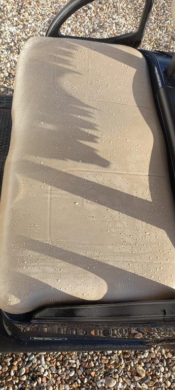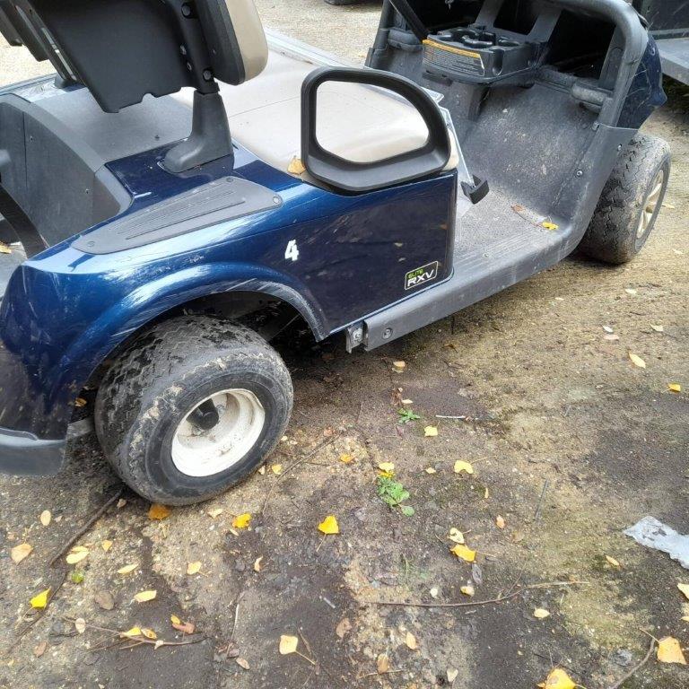 PATRIOT BLUE 48 VOLT DC LITHIUM ION, ON BOARD CHARGER, FOLD DOWN WINDSHIELD, STONE BEIGE SUNTOP STONE BEIGE SEATS, TWIN BAG CARRIER, SWEATER BASKET.
