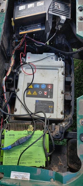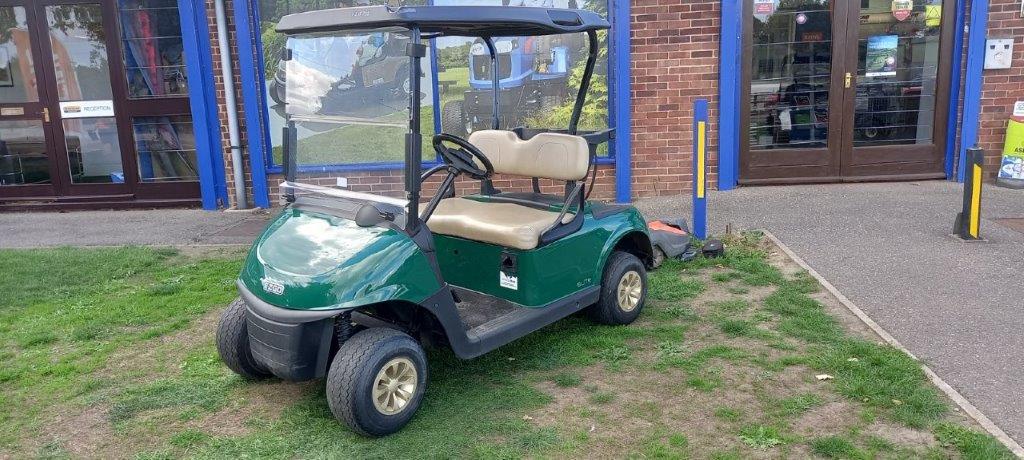 FORREST GREEN 48 VOLT DC LITHIUM ION, ON BOARD CHARGER, FOLD DOWN WINDSHIELD, BLACK SUNTOP, STONE BEIGE SEATS, TWIN BAG CARRIER, SWEATER BASKET.