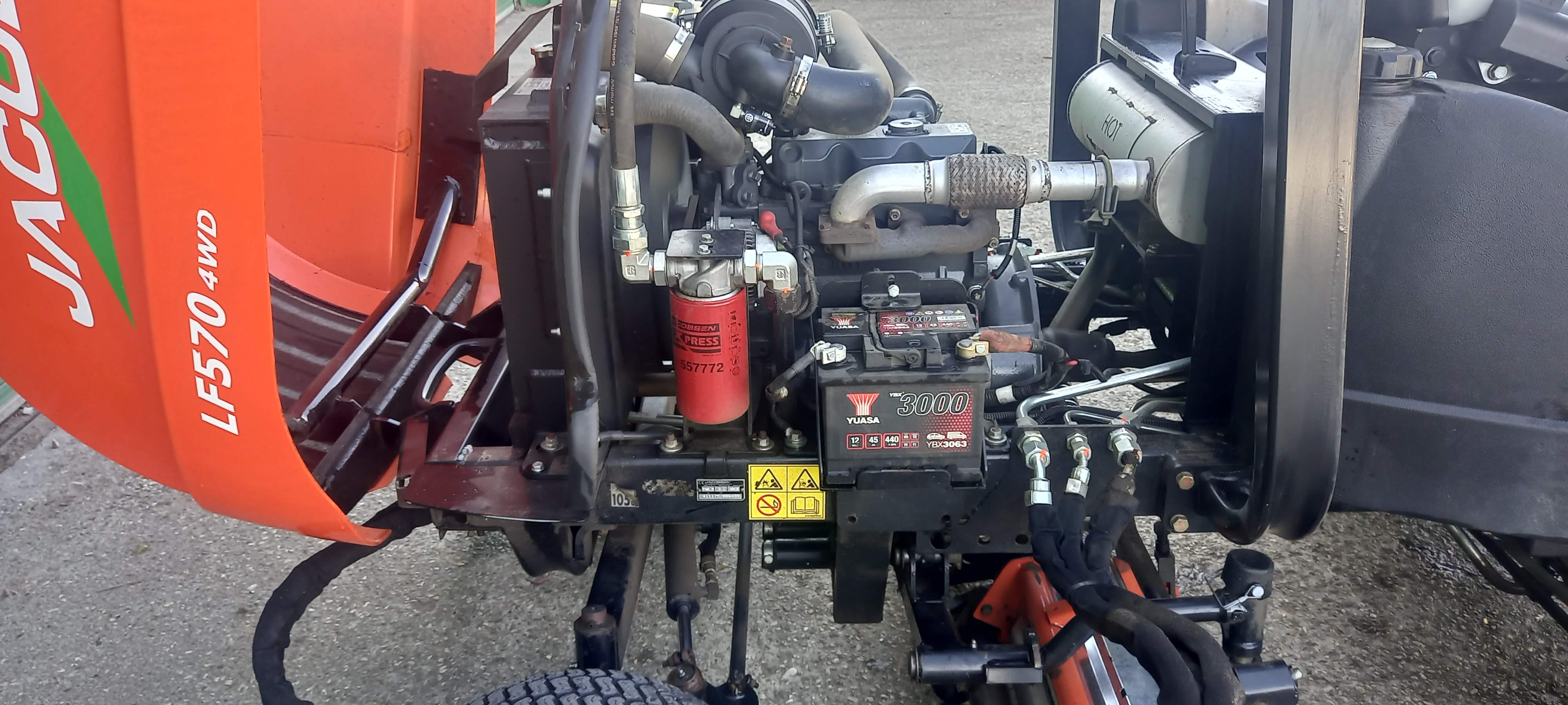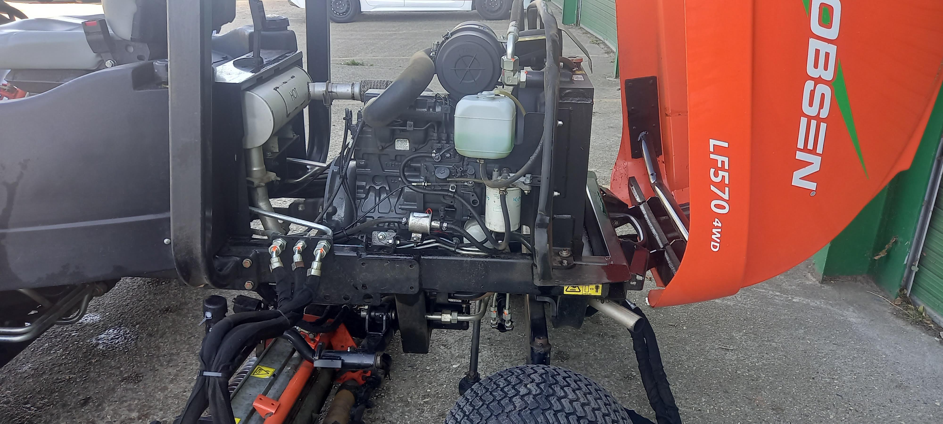9 BLADE RRB 38HP 4 CYLINDER KUBOTA DIESEL ENGINE, 4 WHEEL DRIVE, POWER STEERING, ONE TOUCH LIFT AND LOWER, 2.54 M WIDTH OF CUT, 9- KNIFE CUTTING UNITS, GROOVED FRONT ROLLERS WITH SCRAPERS, REAR ROLLER BRUSHES.