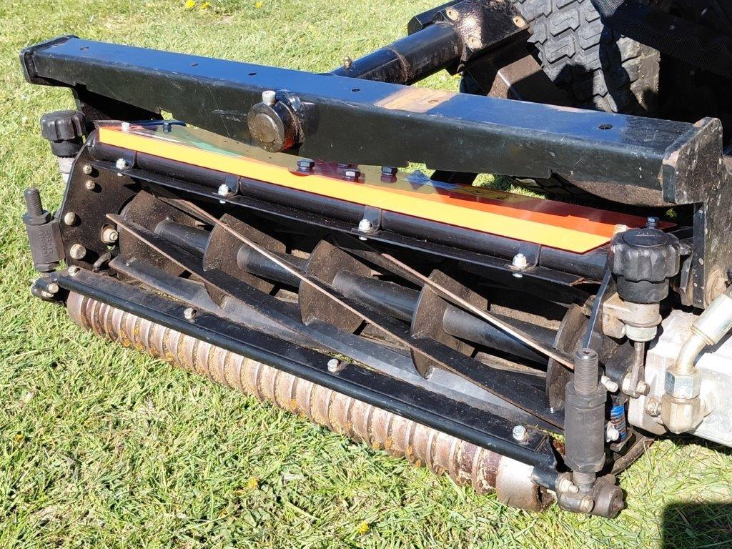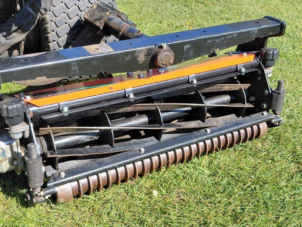 FINE CUT TRIPLE 7K 24.8 hp KUBOTA DIESEL ENGINE, PARALLEL-SERIES "ON DEMAND" 3WD, HYDRAULIC POWER STEERING WITH TILT STEERING WHEEL, SET OF 3, 7- KNIFE FLOATING HEADS, GROOVED FRONT ROLLERS WITH SCRAPERS.
