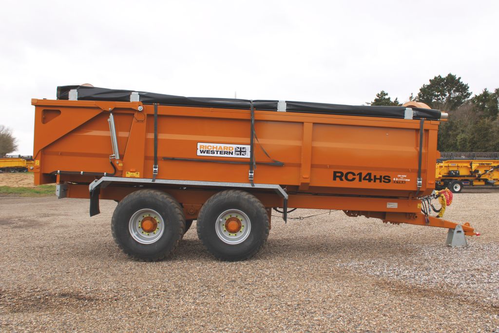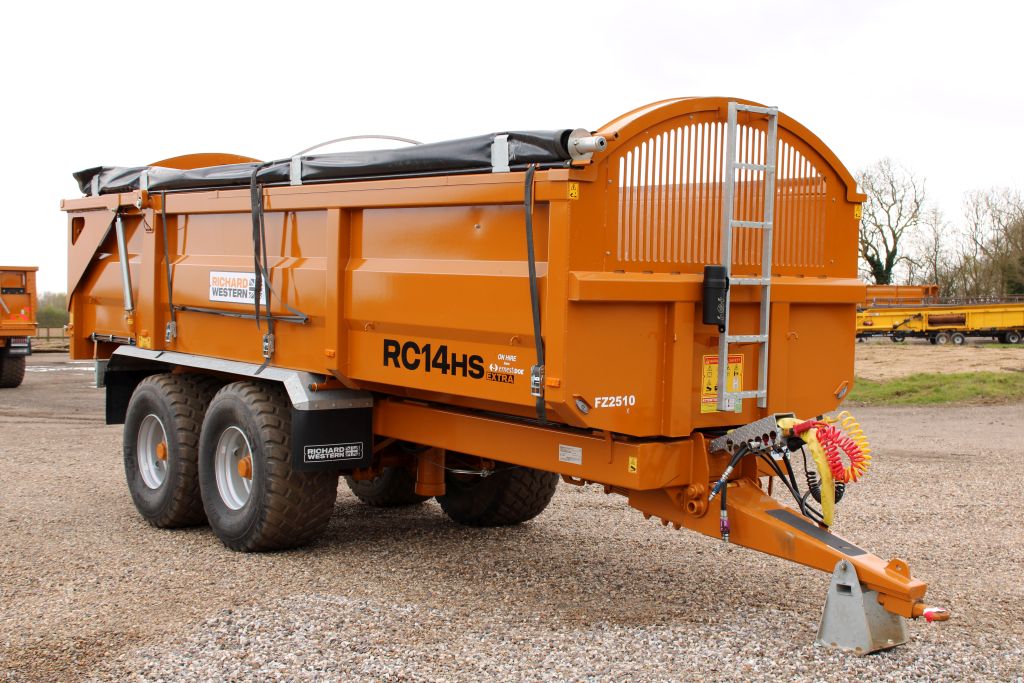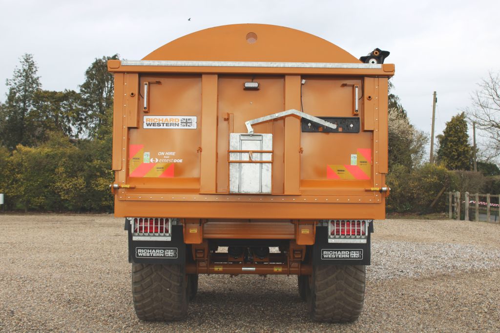 Ex Hire Trailer Sprung Drawbar, Flashing Beacon, Arched Front w/ Perspex Window, High Rear Tail Lights, Hyd Tailboard, Grain Chute, Body Mounted Mud Guards & Mud Flaps - Galvanized, Air & Hyd Brakes w/ Load Sensing Valve for Air Brakes, Hyd Load Sensing Valve, Swivel Eye, Roll Over Sheet - Centre Wind 560/60R22.5 BKT